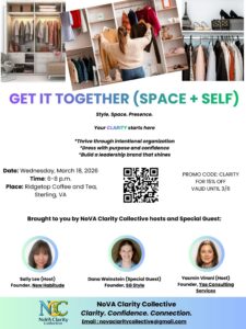 NoVA Clarity Collective: Get it Together is a reset opportunity for women ages 21+ who are ready to feel more confident, aligned, and intentional—at work and at home.