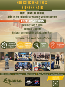 This festive event is the 2nd Annual Holistic Health and Fitness Fair (H2F2) taking place on Saturday, 2 May 2026 at the National Museum of the U.S. Army from 10:00 AM to 3:00 PM. The George Washington Chapter AUSA is very fortunate to co-sponsor this our second annual event with The Washington Tattoo, an official partner of the America 250 celebrations!