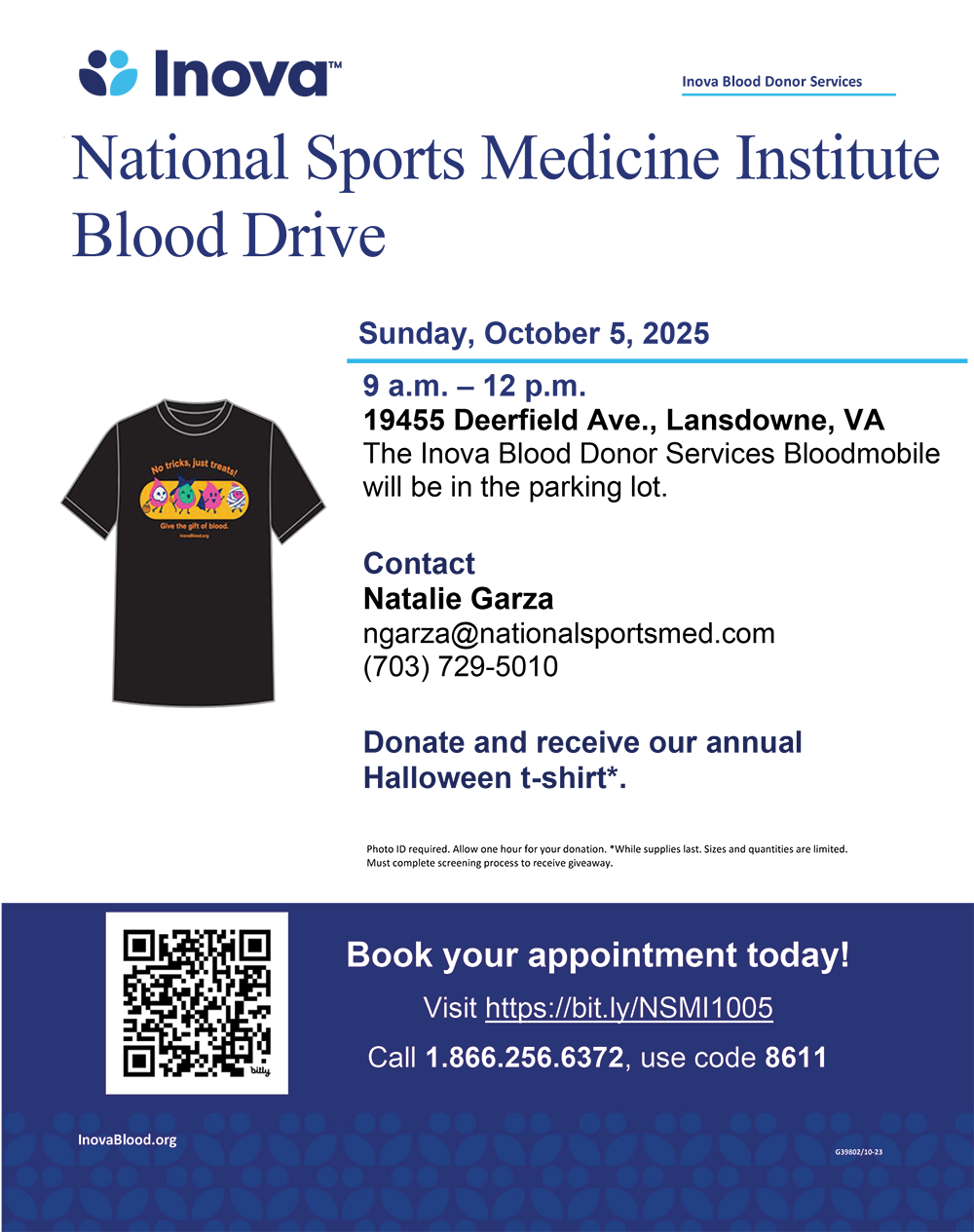 Sunday, October 5th, from 9 a.m. to 1 p.m. in the parking lot of 19455 Deerfield Ave. parking lot – Lansdowne, VA 20176